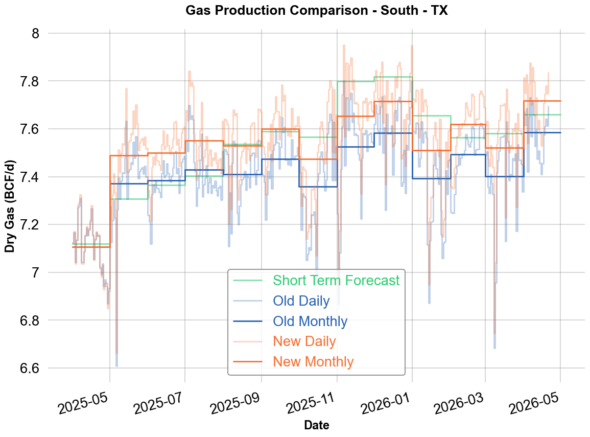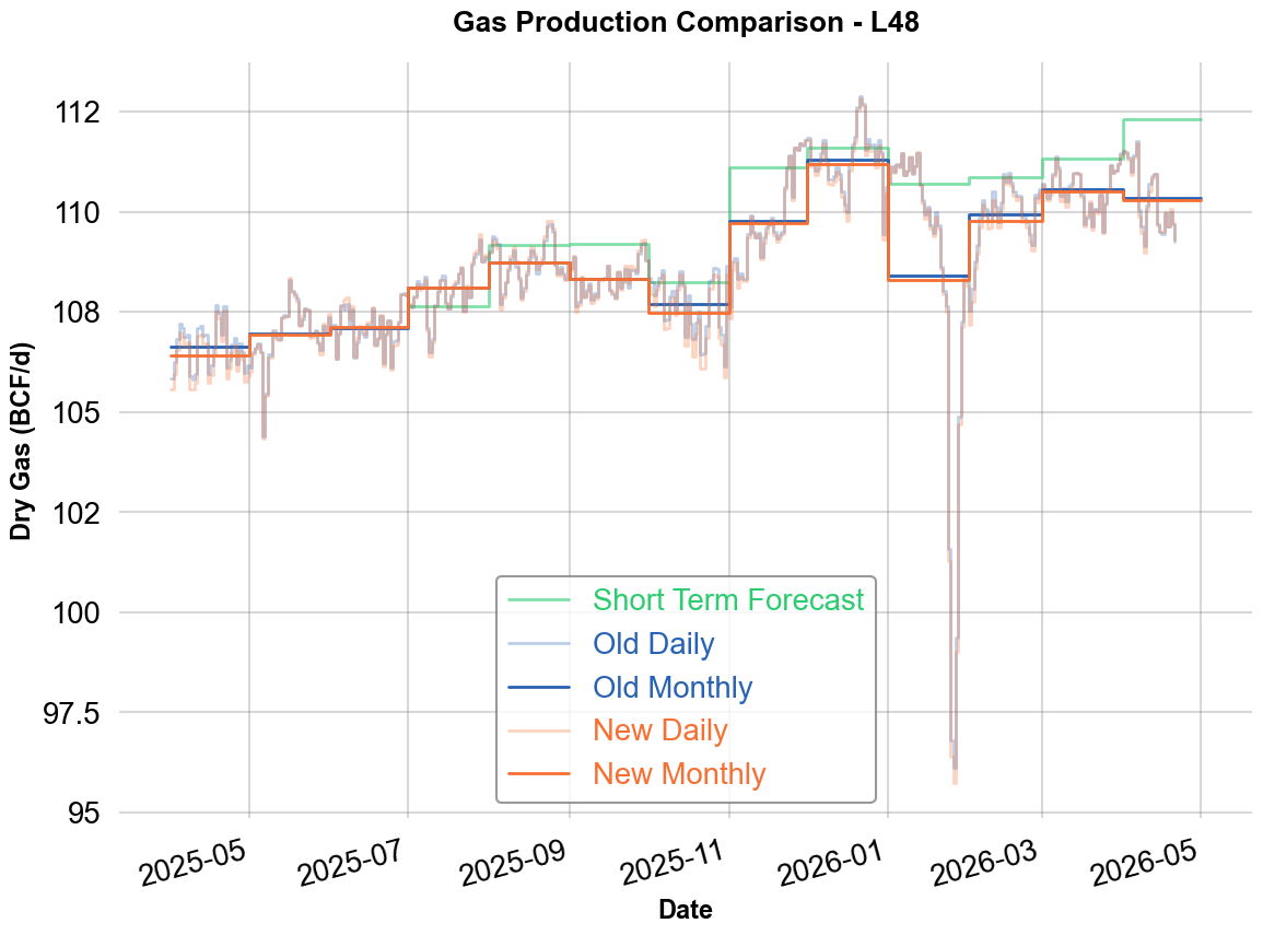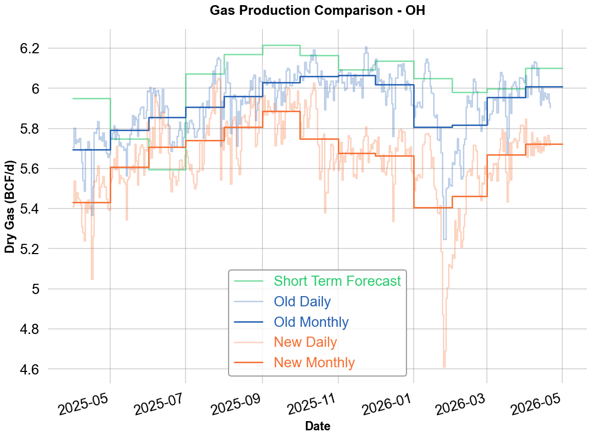 Ohio reports its production on a quarterly basis. We have improved our allocation of production across the months within each quarter to produce a more accurate model. As a result, our Ohio production estimates have been revised downward by an average of 0.28 Bcf/d since July 2025. The updated STF will be live at the same time as this change.