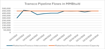 SynMax Research: Interstate interconnect flows on LEG (Louisiana Energy Gateway) pipeline have increased since August 29th, 2025, and are negatively impacting total Haynesville LA interstate pipeline production flows.