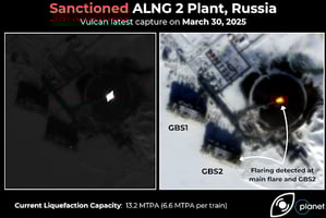 Located on the west coast of the North American continent, the Shell-majority-owned (40%) LNG Canada facility—in partnership with Petronas (25%), PetroChina (15%), Mitsubishi (15%), and Korea Gas (5%)—has commenced its startup phase. Flaring was detected in late January 2025, and the facility is currently undergoing equipment testing. A press release in early March confirmed the planned import of an LNG cargo for trial purposes.