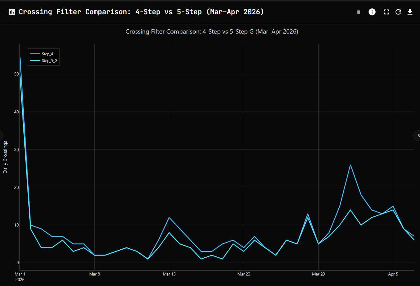 - April 1 Peak: Before the fifth filter, the false positive rate hit a staggering 46%.