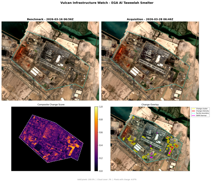 - Note: Aluminum smelters produce significant baseline thermal signatures; detected fluctuations may reflect operational variance rather than combat damage.